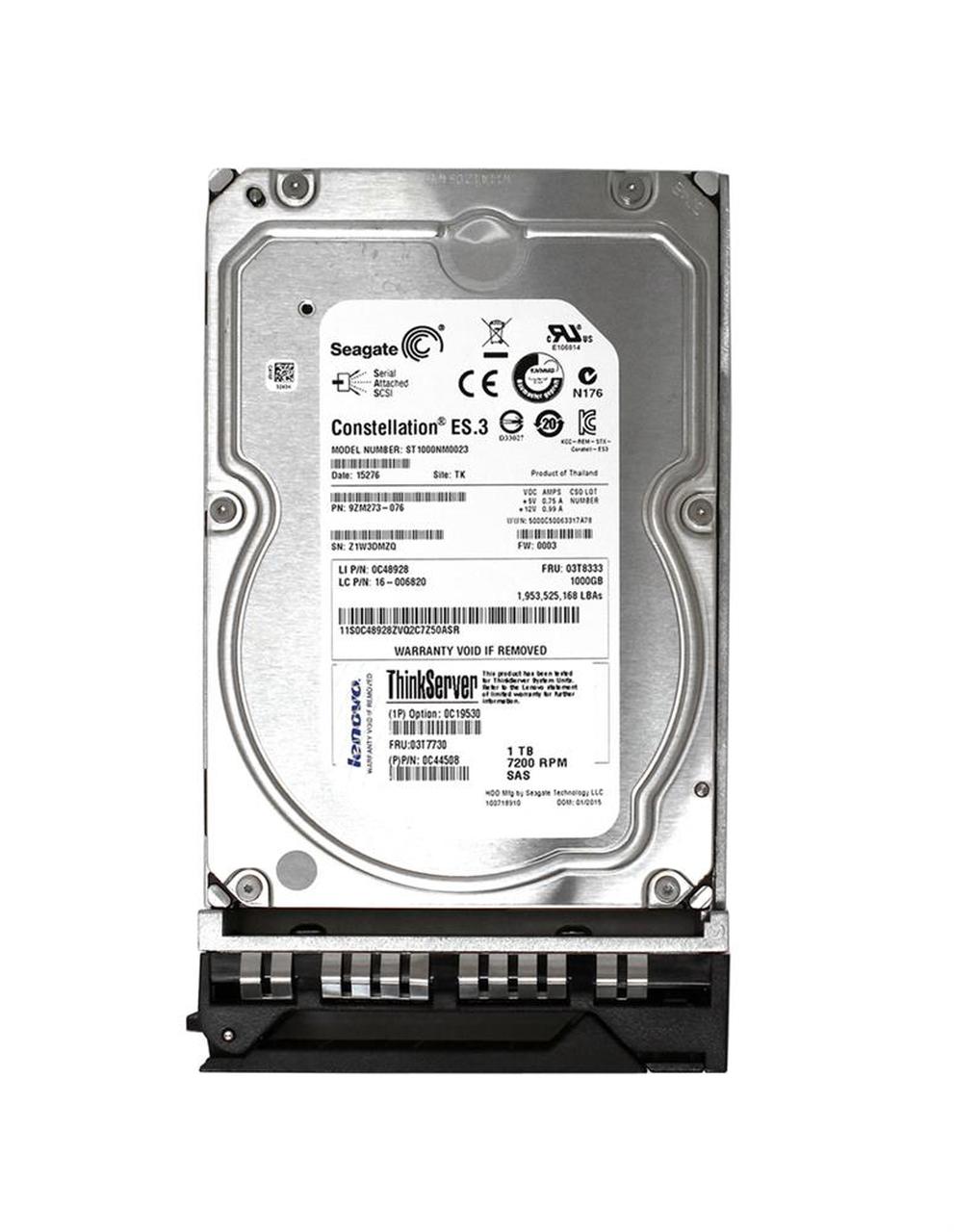 03T8333 Lenovo 1TB 7200RPM SAS 6Gbps 128MB Cache 3.5-inch Internal Hard Drive for ThinkServer RD340