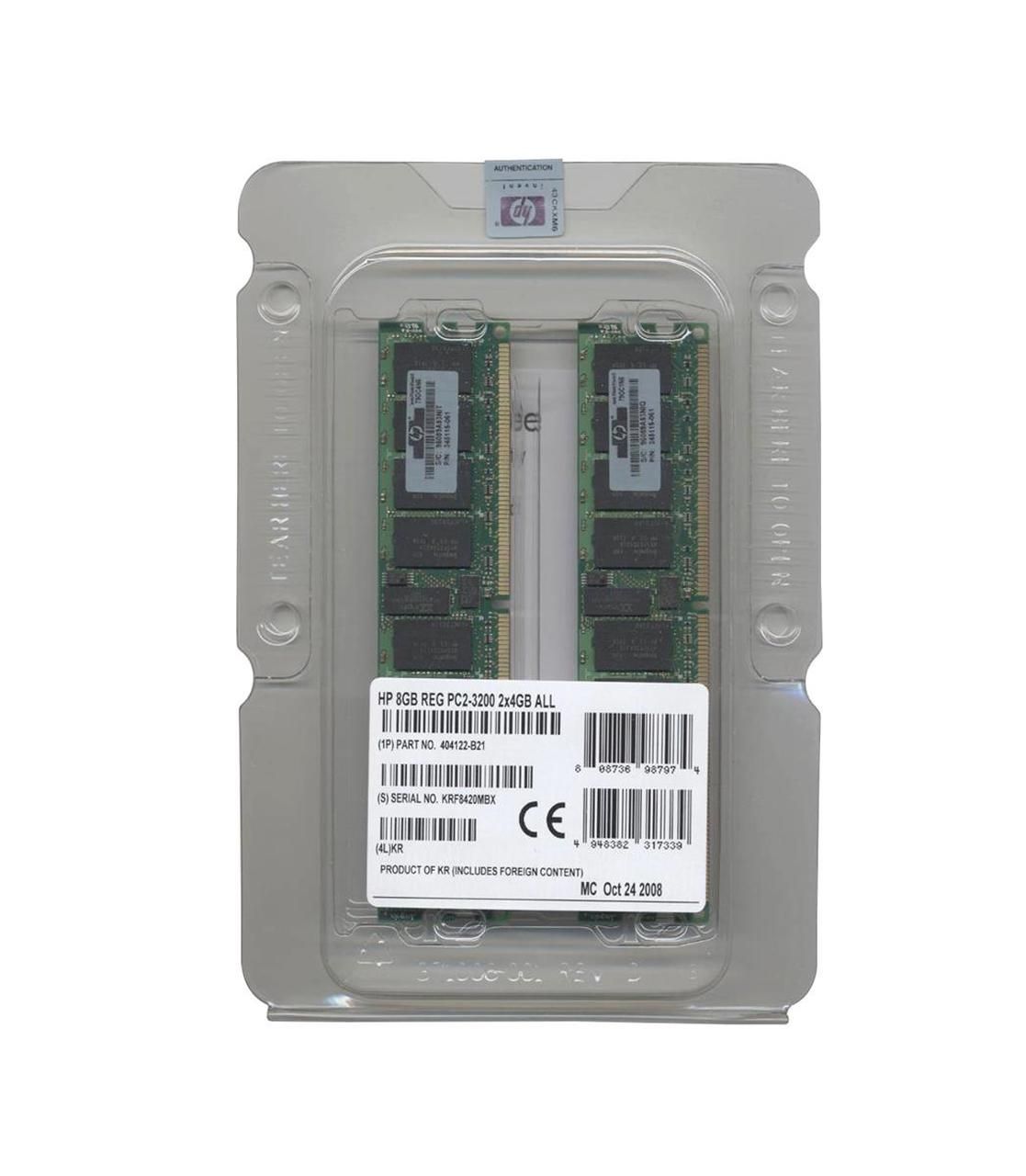 404122-B21 HP 8GB Kit (2 X 4GB) PC2-3200 DDR2-400MHz ECC Registered CL3 240-Pin DIMM Memory for ProLiant DL580 G3 and DL580 G4 Server