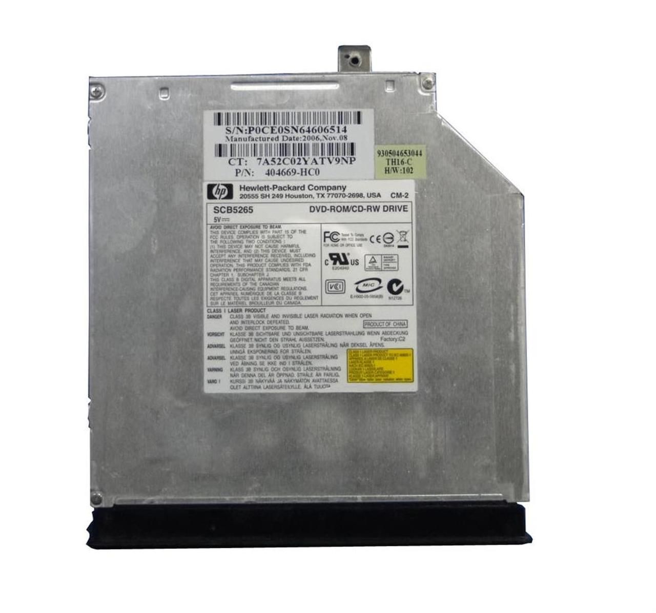 404669-HC0 HP 8x24x DVD-ROM/CD-RW IDE SlimLine Combo Optical Drive for NX9500/ZD7000 Series Notebook
