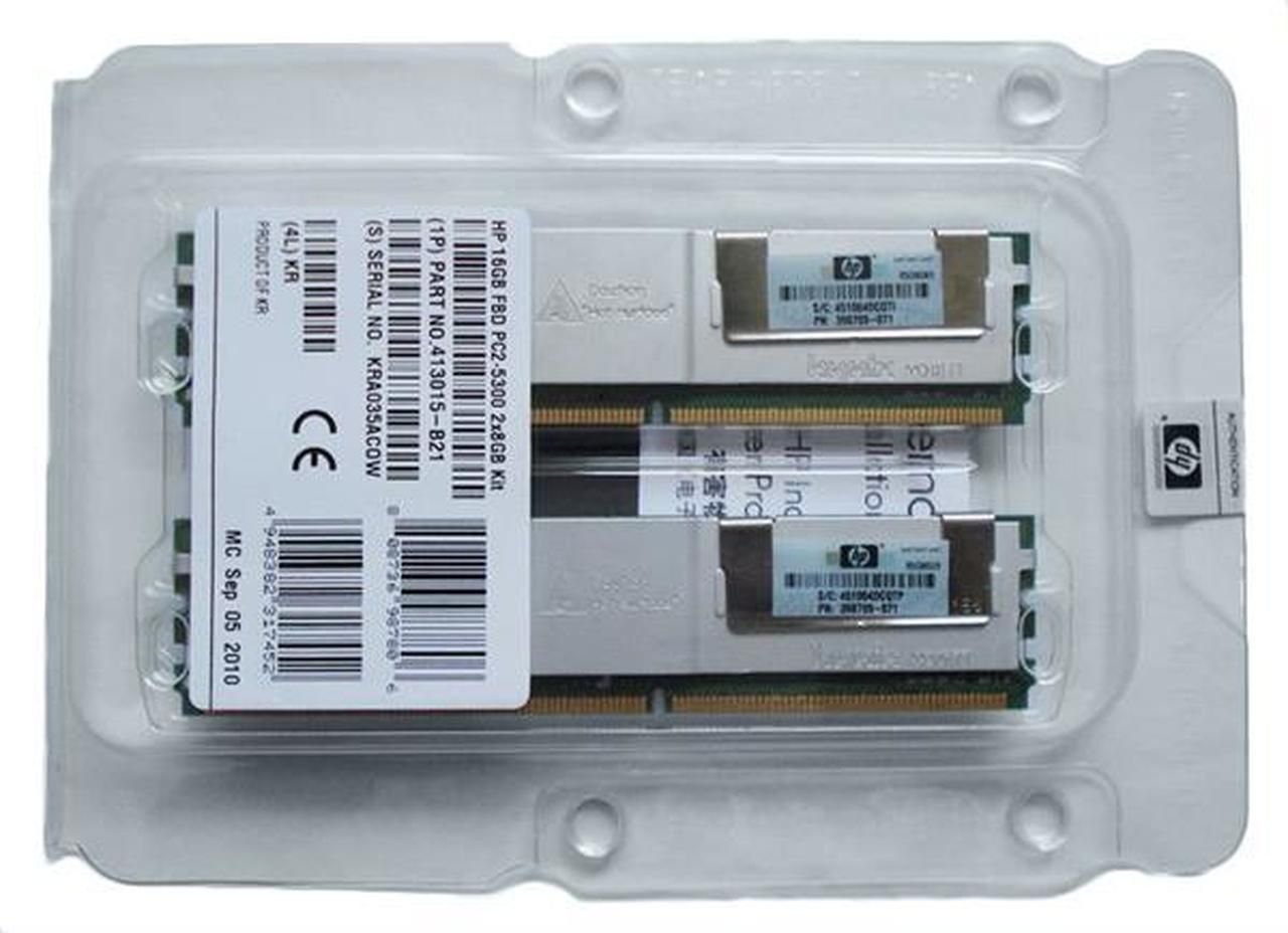 413015R-B21 HP 16GB Kit (2 X 8GB) PC2-5300 DDR2-667MHz ECC Fully Buffered CL5 240-Pin DIMM Dual Rank Memory for ProLiant DL380-G5 Server