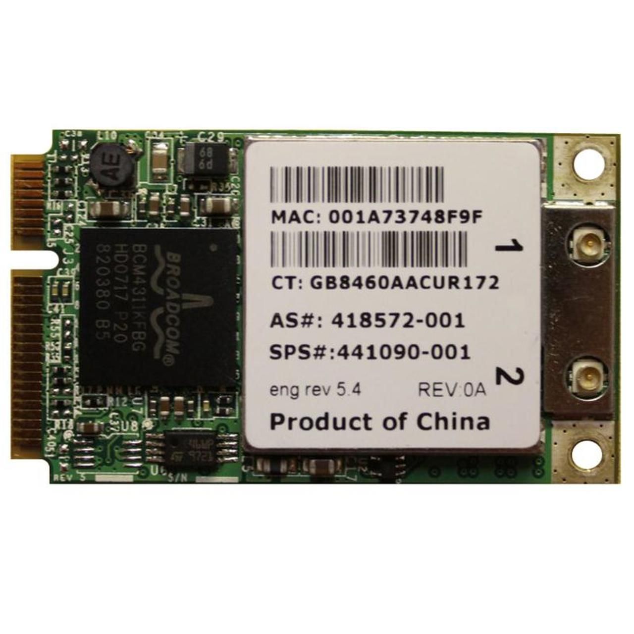 Since 1990, MCA has been a recognized leader in the supply of quality high-end servers, workstations and components from all the major manufacturers. We can supply you with 418572R-001 HP Mini PCI-Express 54G 802.11b/g High Speed Wireless LAN (WLAN) Network Interface Card for DV2000/DV6000/DV9000 Series Notebooks at a low price.