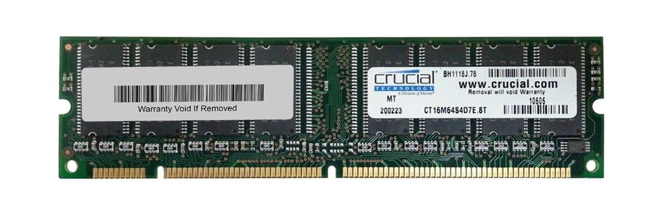 CT16M64S4D7E Crucial 128MB PC133 133MHz non-ECC Unbuffered CL2 168-Pin DIMM Memory Module