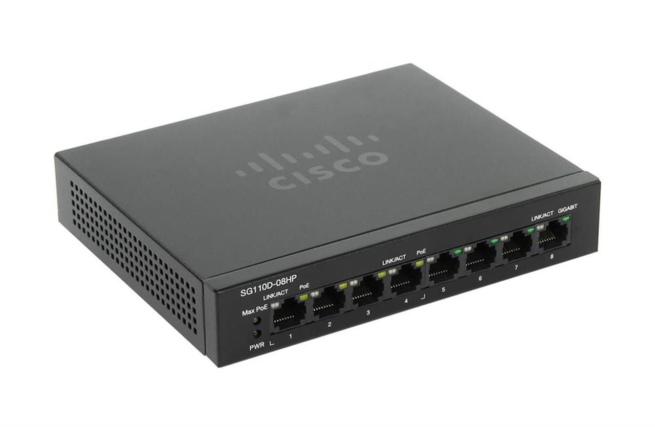 SG110D-08HP-EU Cisco SG110D-08HP 8-Ports 10/100/1000Base-T RJ-45 PoE Layer2 Wall Mountable, Rack-mountable, Desktop Ethernet Switch